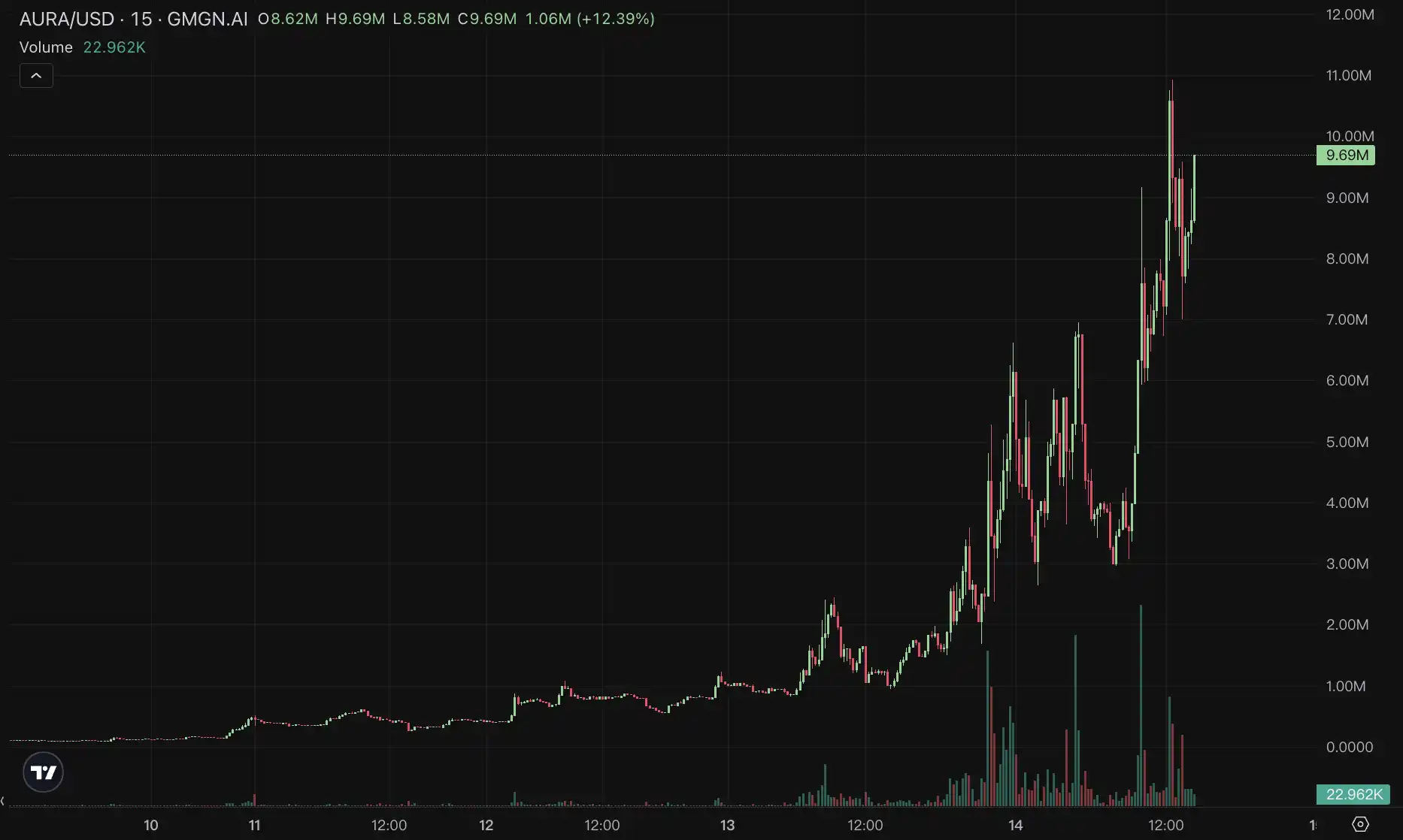 AURA 当前市值为 900 万美元,24 小时涨幅 800%。