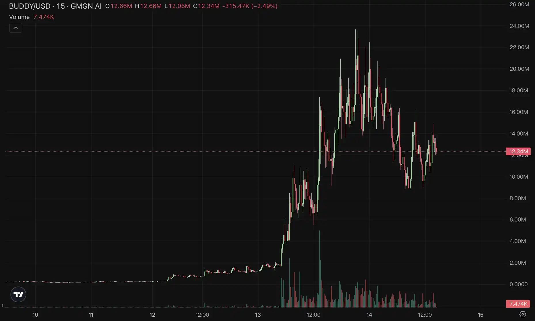 BUDDY 当前市值为 1200 万美元,24 小时跌幅为 4%。