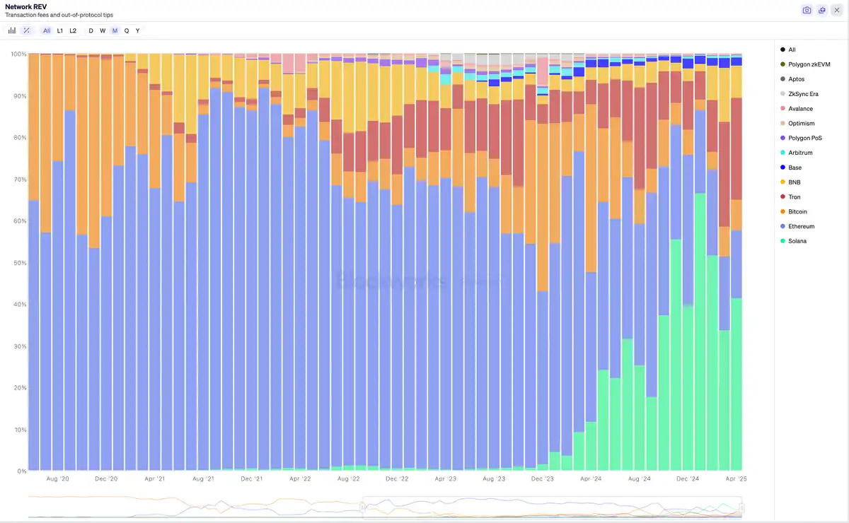 ·如今,Solana 排第一,Tron 排第二,均超过以太坊