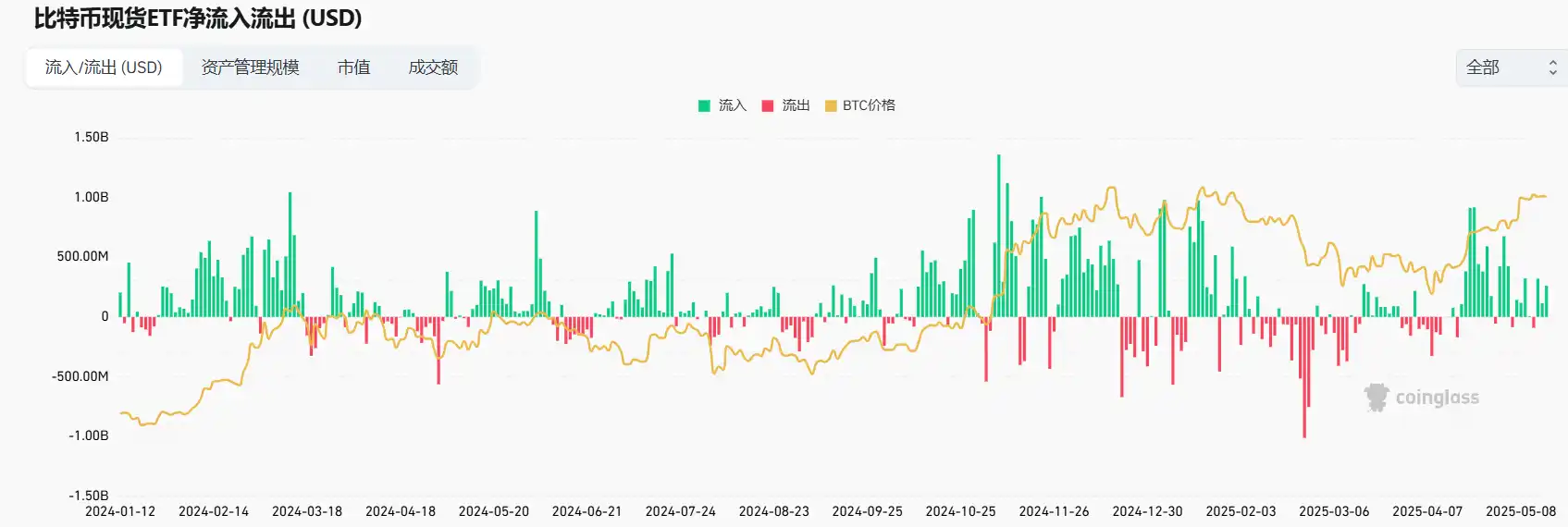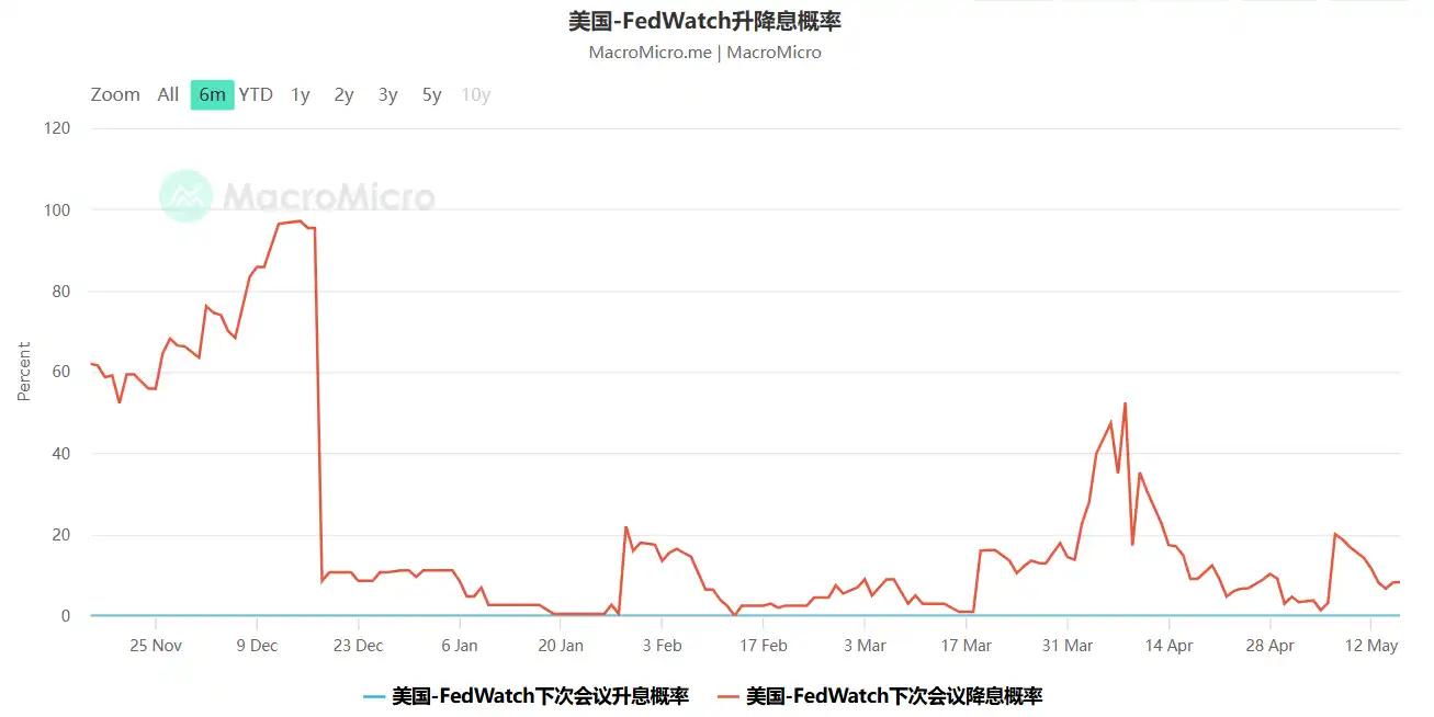 根据 FedWatch 工具,截至 2025 年 5 月,市场普遍预计美联储将在年中至年末之间开始首次降息。历史经验表明,宽松政策与加密资产呈现正相关关系,尤其是「降息—美元疲软—风险资产上涨」这一逻辑已多次验证。