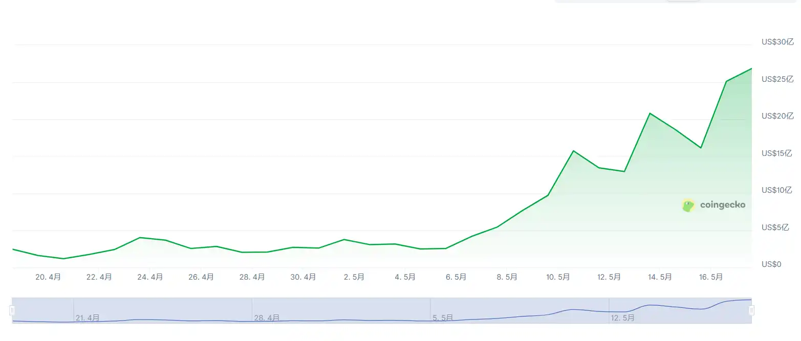 在历轮牛市中,BTC 引领、ETH 跟随、山寨爆发是常规节奏。2025 年 5 月的链上数据表明,L2 生态(如 Base、Blast)及 Solana 链上的新项目交易量显著上升,结合 DeFi 总锁仓量(TVL)突破年内新高,暗示市场仍在「主升浪后期」,而非顶部。