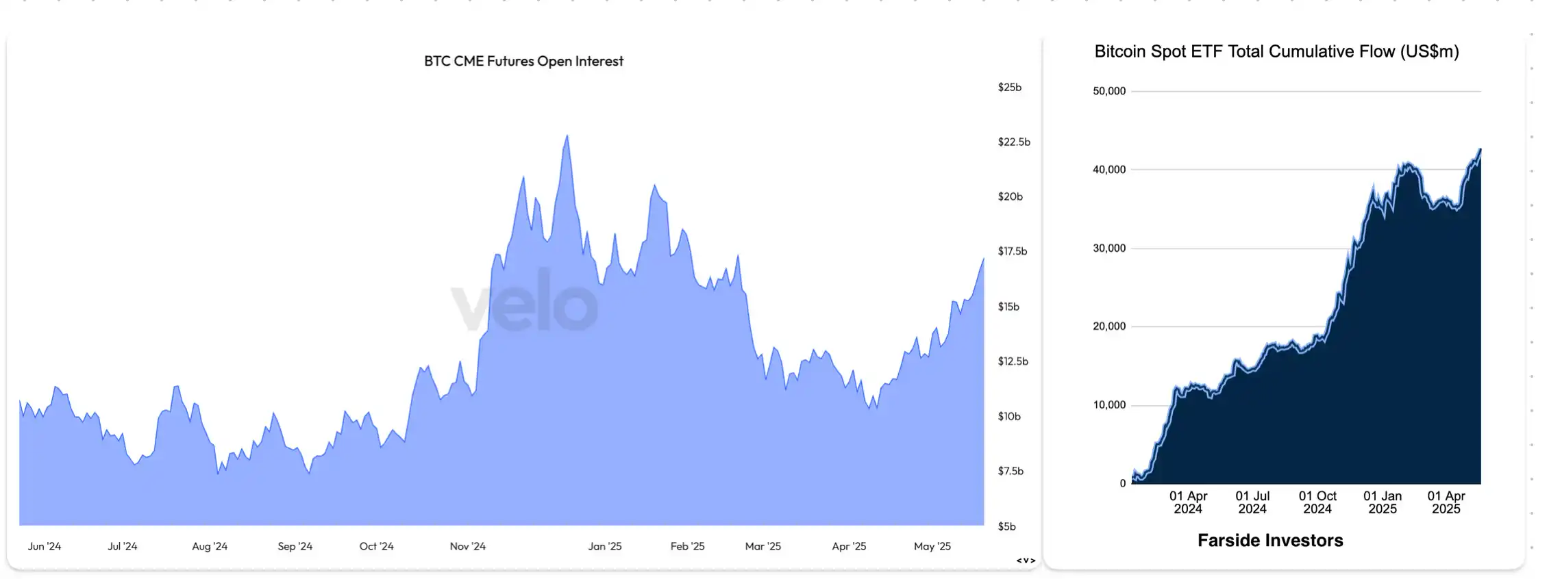 这一点可以从两方面看出:一是美国上市的现货比特币 ETF 持续吸引大量资金流入,二是芝商所(CME)比特币期货的未平仓合约规模依然相对温和。