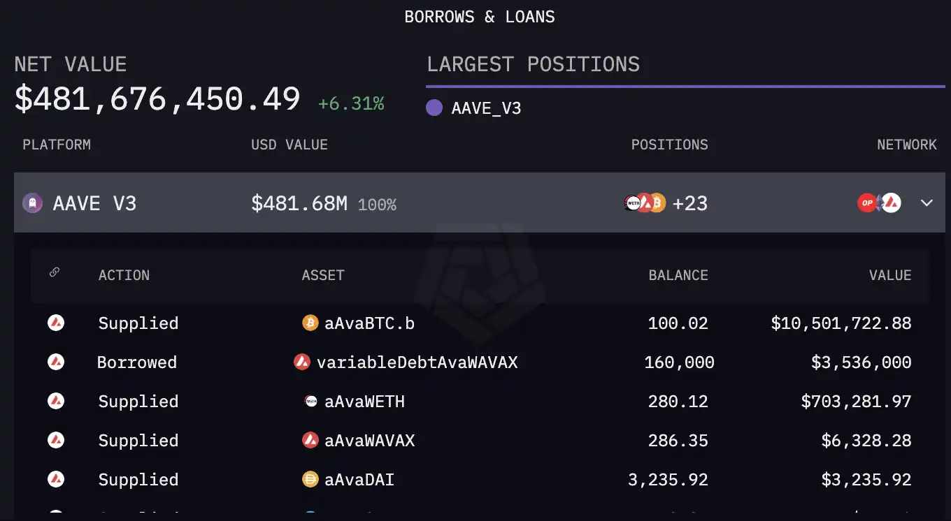 而根据 Arkham 数据显示,Abraxas Capital 的 ETH 资金主要流向以太坊 DeFi 协议。过去 7 天,Abraxas Capital 还向 Aave、Ether.fi、Compound 等主流 DeFi 协议转入超 17.4 万枚 ETH,按当前价格估算总价值约为 4.4 亿美元。特别是 Aave 为 Abraxas Capital 的 ETH 持仓的主要用途,目前其在 AAVE V3 上持有接超 4.8 亿美元的资产头寸。