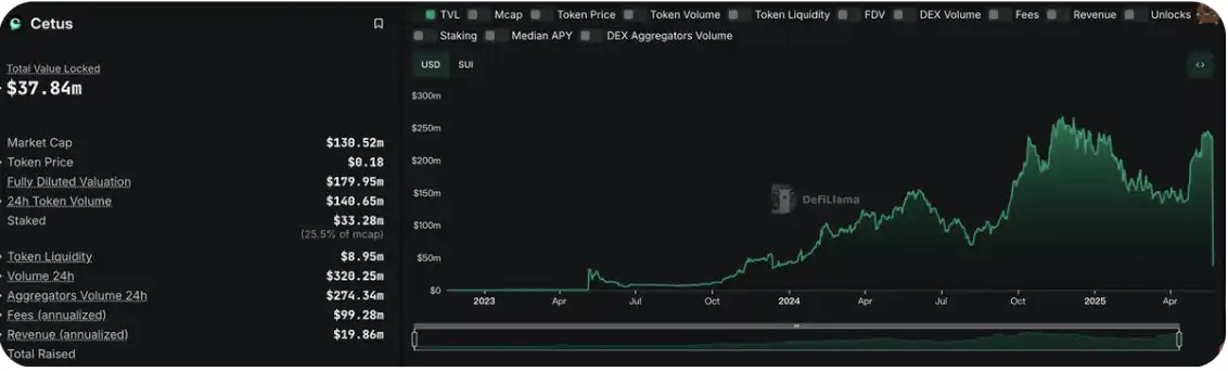 Cetus Protocol 的 TVL(数据来源:https://defillama.com/protocol/cetus)