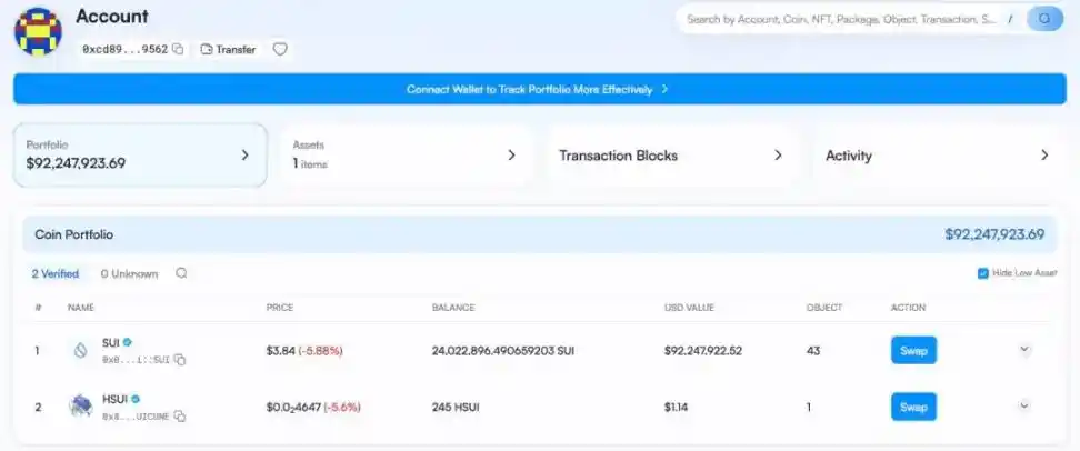 攻击者还将 24,022,896 SUI 转入新地址 0xcd8962dad278d8b50fa0f9eb0186bfa4cbdecc6d59377214c88d0286a0ac9562,目前暂未转出: