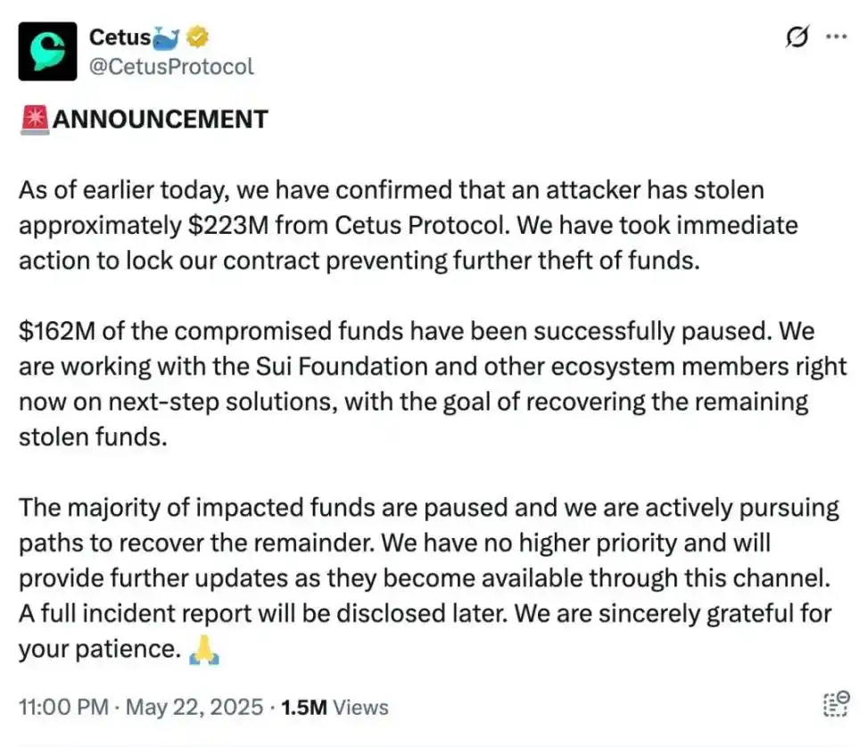 (https://x.com/CetusProtocol/status/1925567348586815622)