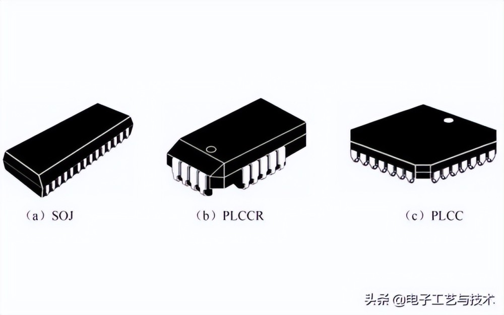 J形引脚类封装(J-lead),是SMT早期出现的一类封装形式,包括SOJ、PLCCR、PLCC,如图8所示。